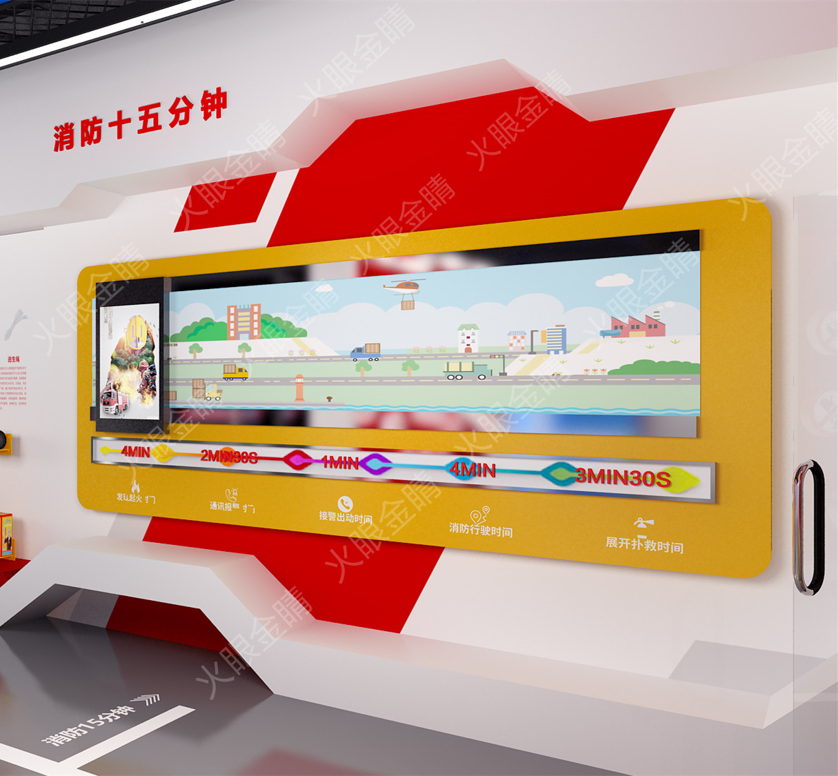火眼金睛消防15分鐘演示系統(tǒng)結(jié)合了滑軌感應(yīng)技術(shù)與3D視頻演繹技術(shù),兩者結(jié)合,觀眾通過(guò)推動(dòng)一體機(jī)屏幕,了解15分總不同階段的消防應(yīng)急內(nèi)容,讓觀眾充分理解消防15分鐘的現(xiàn)實(shí)意義。在生活中能夠更好的按照火災(zāi)撲救原則規(guī)范自己的行為,科學(xué)的應(yīng)對(duì)各類(lèi)火災(zāi)的發(fā)生。