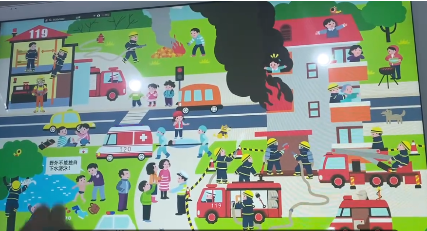 消防大世界互動小游戲,場景設(shè)置了消防小站、消防救火車、消防云梯車、120救護車、110警車、火災(zāi)逃生、高樓起火、消防員出行、紅綠燈過馬路、等幾十個小場景共同組成的安全家園