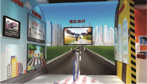 模擬非機動車駕駛系統(tǒng)采用三維投影技術,真實還原騎行過程中所遇到的各類問題,以及突發(fā)問題的解決方法,體驗者根據(jù)操作仿真自行車,模擬路面行駛過程,達到了解交通知識